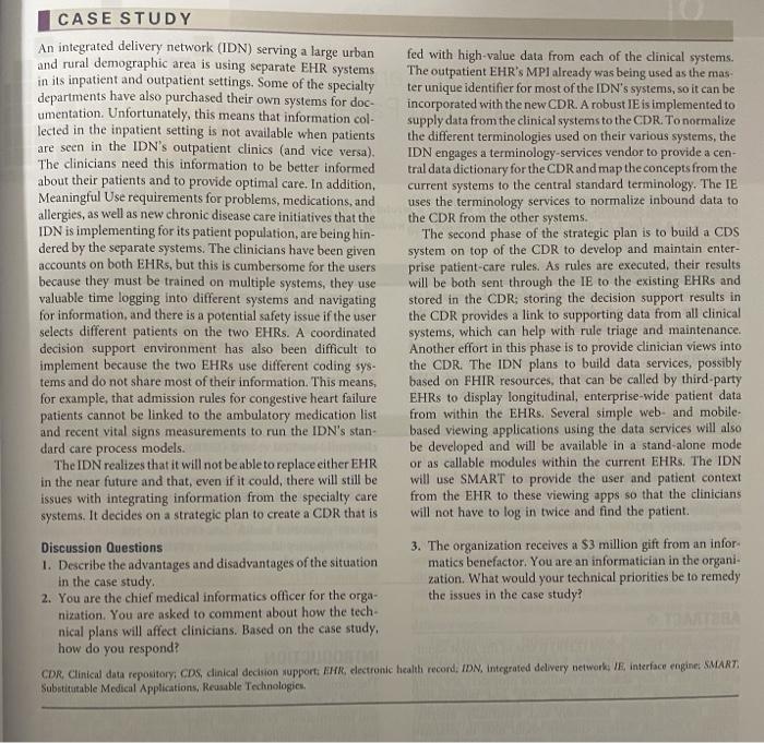 Solved Case Study An Integrated Delivery Network Idn Chegg Com
